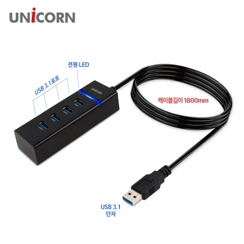 À¯´ÏÄÜ 4Æ÷Æ® ¹«Àü¿ø USB3.1Çãºê 1.8MÄÉÀ̺í LH-4000A