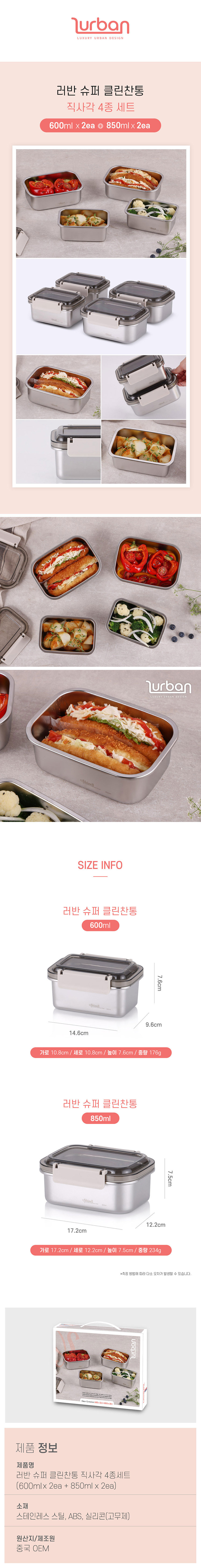¸ðµ¨¸í ½¬Á© ·¯¹Ý ½´ÆÛŬ¸°ÂùÅë Á÷»ç°¢4Á¾¼¼Æ® (600ml*2EA+850ml*2EA)